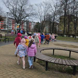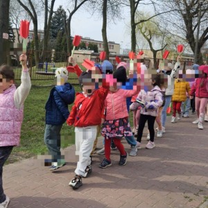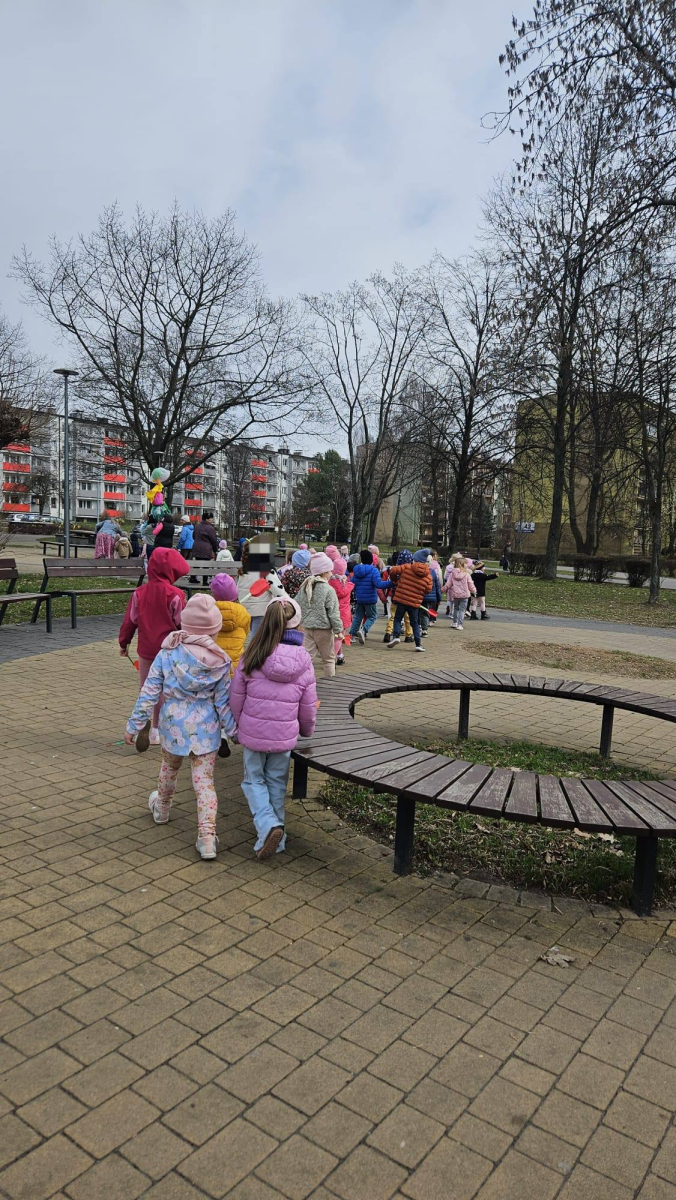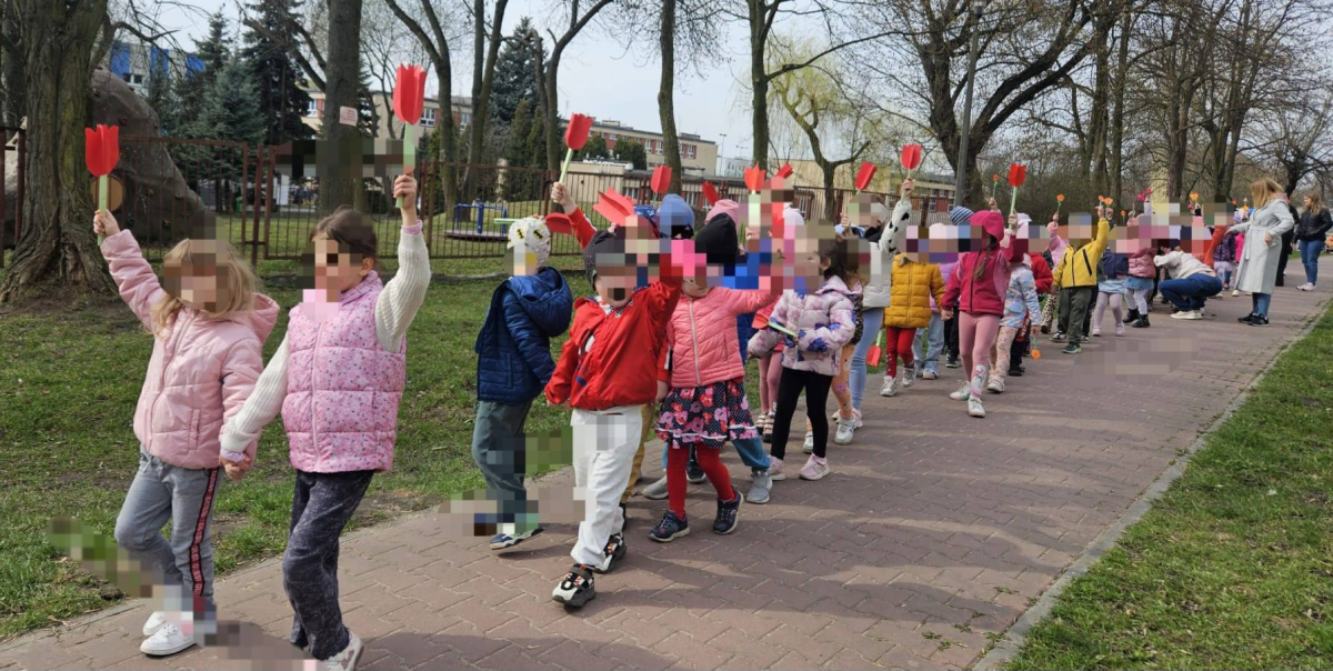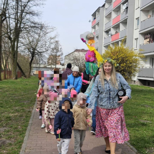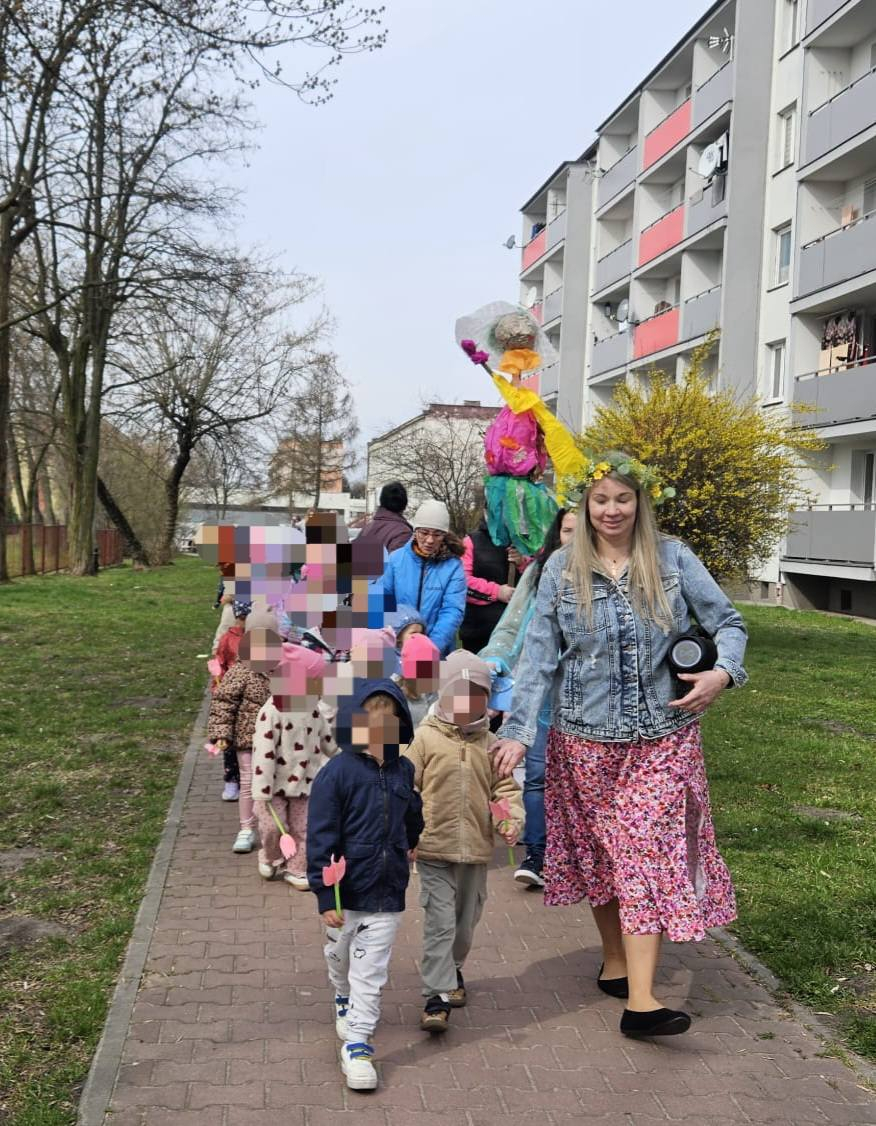 Dziś w naszym przedszkolu radośnie powitaliśmy pierwszy dzień wiosny! Dzieci z wielkim entuzjazmem uczestniczyły w przygotowanych atrakcjach – było przedstawienie przygotowane przez grupę, śpiewanie wiosennej pioseneki oraz kolorowy pochód i wręczanie Dąbrowiakom papierowych kwiatów zrobionych przez dzieciaczki.