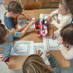 Na koniec dzieci wykonały pracę plastyczną w postaci tarczy, gdzie narysowały zachowania innych osób czy sytuacje, które im nie odpowiadają.